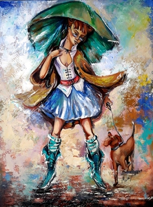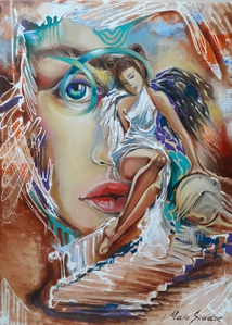 Olieverf op doek! ' Wat doe je als de jeugd vervaagt, de tijd zal komen en zelfs de hoogmoedige zon zal ondergaan...' Via een mix van abstracte, kubistische stijl het schilderij vertaald zijn verhaal. Zoals een toeschouwer zei over Maia' s werken ' op eerste instantie zie je niets op het doek, alleen maar kleuren, maar als je op afstand kijkt langzamerhand komen allerlei voorwerpen tevoorschijn en dan ontdek je een magische wereld